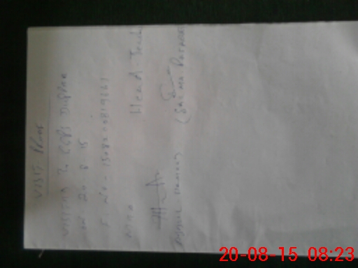 | Monitoring Date: 20-08-2015 | Start Time: 20-08-2015 08:00 AM | End Time: 20-08-2015 08:28 AM | Name of MEA: Ab**** Ha**** | |