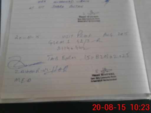 | Name: UZ**** KH**** Designation: (School Headmaster's/Headmistress's) Pst Phone/Cell Number: 03**** |