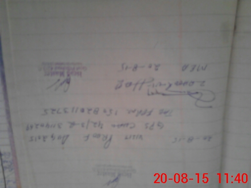 | Monitoring Date: 20-08-2015 | Start Time: 20-08-2015 11:05 AM | End Time: 20-08-2015 11:48 AM | Name of MEA: Za**** BN**** | |