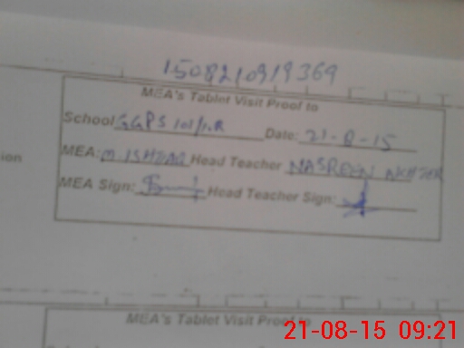 | Attendance Register | Head Teacher | MEA with School | Visit Proof |