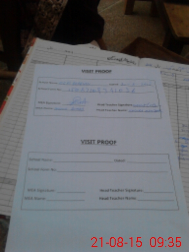 | Attendance Register | Head Teacher | MEA with School | Visit Proof |