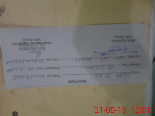| Monitoring Date: 21-08-2015 | Start Time: 21-08-2015 08:56 AM | End Time: 21-08-2015 10:01 AM | Name of MEA: Kh**** Ha**** (R**** | |