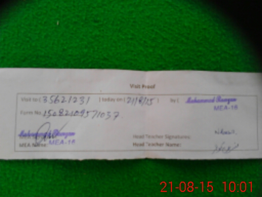 | Attendance Register | Head Teacher | MEA with School | Visit Proof |