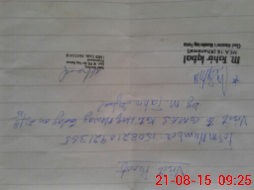 | Monitoring Date: 21-08-2015 | Start Time: 21-08-2015 08:46 AM | End Time: 21-08-2015 10:07 AM | Name of MEA: M.Ta**** Iq**** (S**** | |
