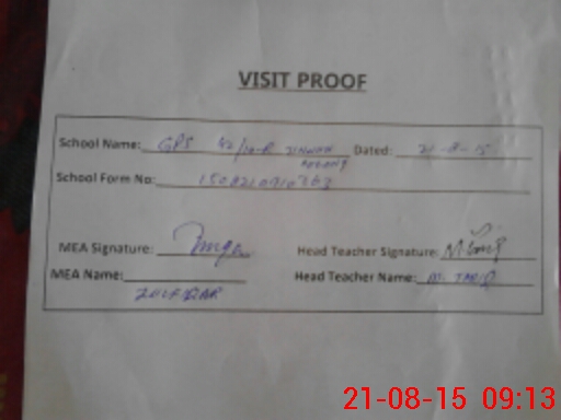 | Attendance Register | Head Teacher | MEA with School | Visit Proof |