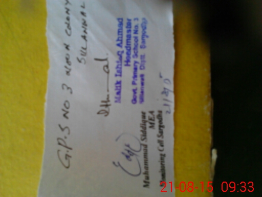 | EMIS Code: 38440100 | Name of School: GPS NO. 3 NOON COLONY SILLANWALI | |||