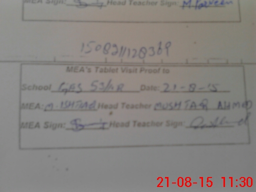 | Attendance Register | Head Teacher | MEA with School | Visit Proof |