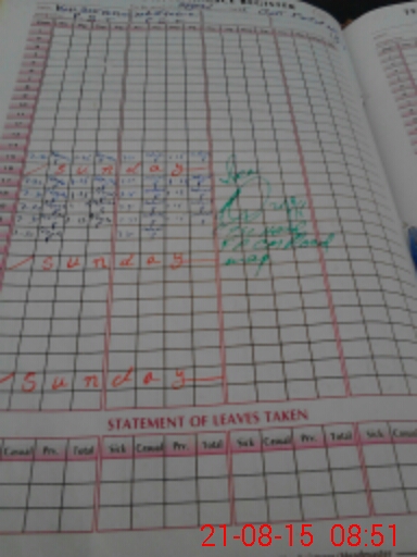 | CNIC | Full Name | Designation | R/C | Absence During Last Calender Month |