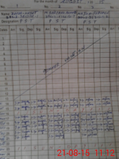 | CNIC | Full Name | Designation | R/C | Absence During Last Calender Month |
