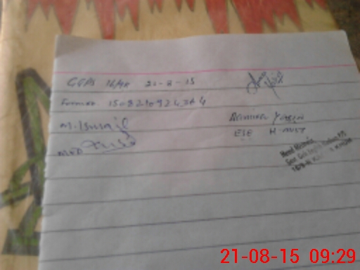 | Monitoring Date: 21-08-2015 | Start Time: 21-08-2015 09:14 AM | End Time: 21-08-2015 09:30 AM | Name of MEA: Z.**** M.Is**** | |