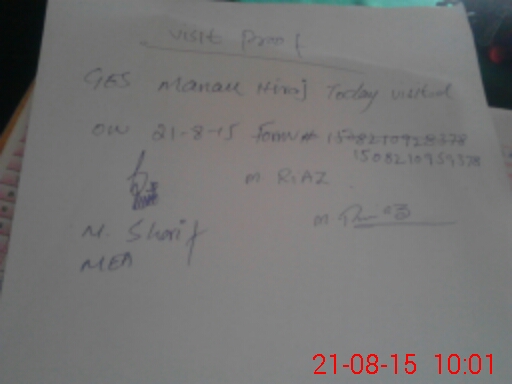 | Monitoring Date: 21-08-2015 | Start Time: 21-08-2015 09:46 AM | End Time: 21-08-2015 10:02 AM | Name of MEA: MU**** SH**** | |