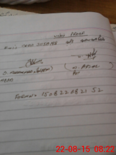 | Monitoring Date: 22-08-2015 | Start Time: 22-08-2015 08:01 AM | End Time: 22-08-2015 08:24 AM | Name of MEA: Mu**** Sa**** BN**** 33 | |