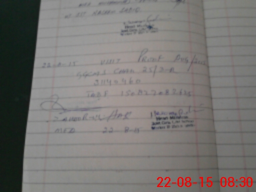 | Monitoring Date: 22-08-2015 | Start Time: 22-08-2015 07:53 AM | End Time: 22-08-2015 08:37 AM | Name of MEA: Za**** BN**** | |