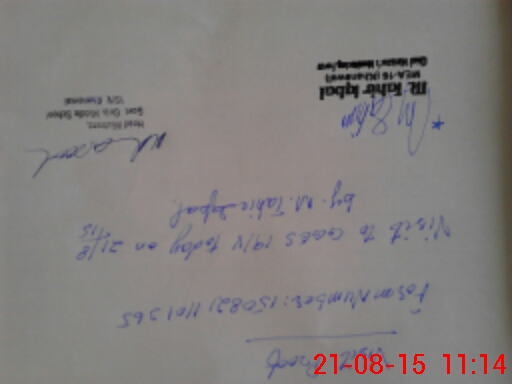 | Monitoring Date: 21-08-2015 | Start Time: 21-08-2015 10:13 AM | End Time: 21-08-2015 11:26 AM | Name of MEA: M.Ta**** Iq**** (S**** | |