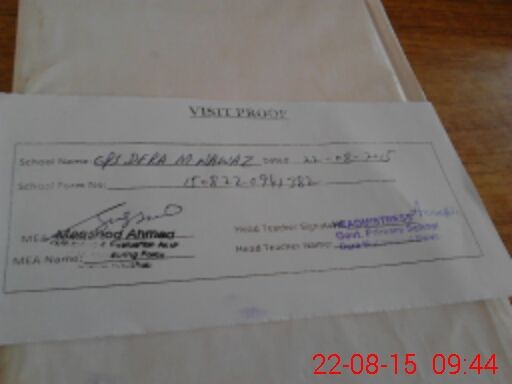 | Attendance Register | Head Teacher | MEA with School | Visit Proof |