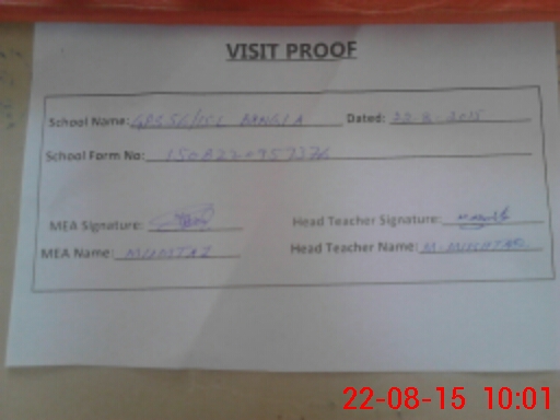 | Attendance Register | Head Teacher | MEA with School | Visit Proof |