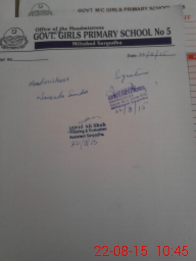 | District: SARGODHA | Tehsil: SARGODHA | Markaz: CORPORATION - FEMALE | Level: Primary | |