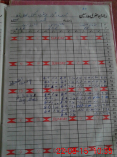 | CNIC | Full Name | Designation | R/C | Absence During Last Calender Month |