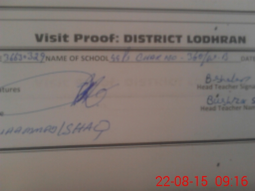 | Name: IR**** SH**** Designation: (School Headmaster's/Headmistress's) PTC Phone/Cell Number: 03**** |