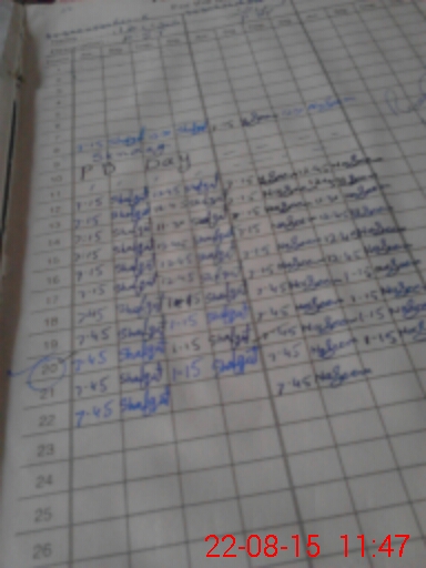 | Monitoring Date: 22-08-2015 | Start Time: 22-08-2015 11:46 AM | End Time: 22-08-2015 12:03 PM | Name of MEA: SH**** AL**** ZI**** (R**** | |