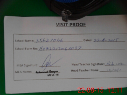 | Attendance Register | Head Teacher | MEA with School | Visit Proof |