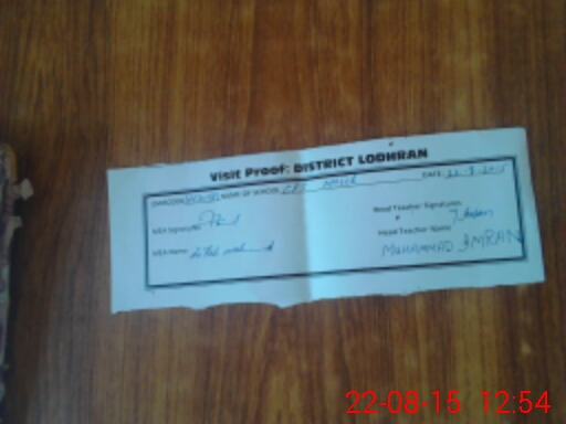 | Certified that this School was Inspected by the Undersigned MEA/DMO Today and the Information Stated Above is as Per Record. | |||||