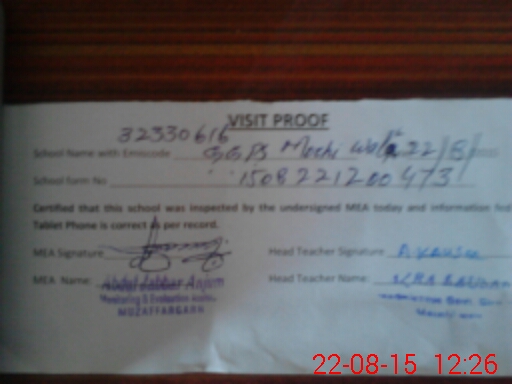| Attendance Register | Head Teacher | MEA with School | Visit Proof |