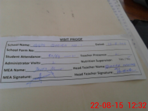 | Attendance Register | Head Teacher | MEA with School | Visit Proof |