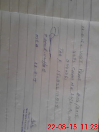 | Monitoring Date: 22-08-2015 | Start Time: 22-08-2015 11:04 AM | End Time: 22-08-2015 11:33 AM | Name of MEA: Za**** BN**** | |
