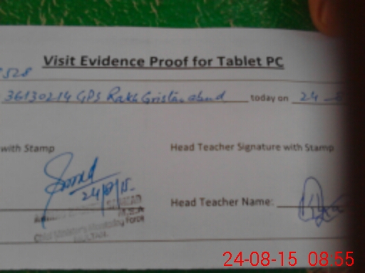 | Attendance Register | Head Teacher | MEA with School | Visit Proof |
