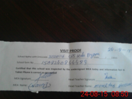 | Attendance Register | Head Teacher | MEA with School | Visit Proof |