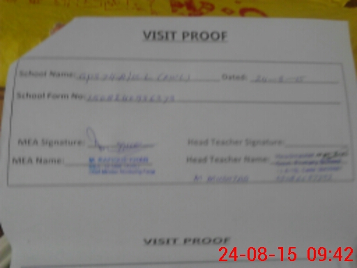 | Attendance Register | Head Teacher | MEA with School | Visit Proof |