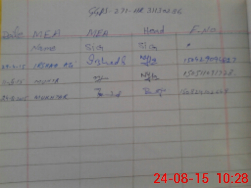 | Monitoring Date: 24-08-2015 | Start Time: 24-08-2015 09:55 AM | End Time: 24-08-2015 10:34 AM | Name of MEA: Mu**** ah**** BN**** 29 | |