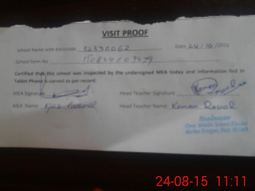 | Attendance Register | Head Teacher | MEA with School | Visit Proof |
