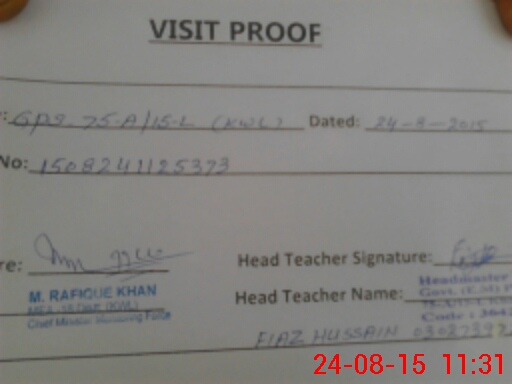 | Name: FI**** HU**** Designation: (School Headmaster's/Headmistress's) PST Phone/Cell Number: 03**** |