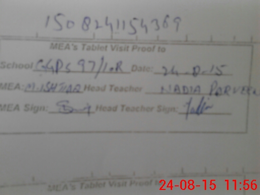 | Attendance Register | Head Teacher | MEA with School | Visit Proof |