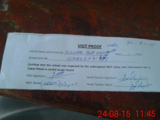 | Attendance Register | Head Teacher | MEA with School | Visit Proof |