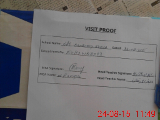 | Attendance Register | Head Teacher | MEA with School | Visit Proof |