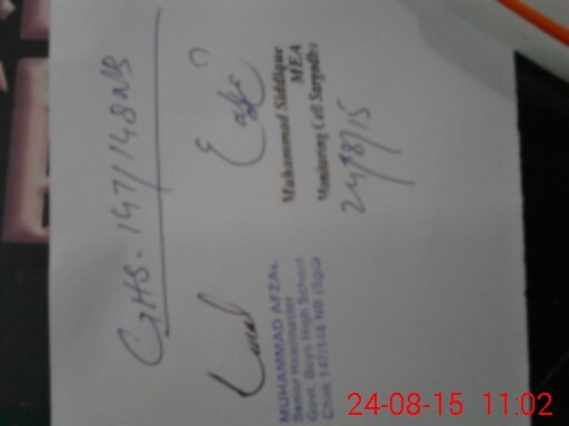 | Name: Im**** Ah**** Designation: (School Headmaster's/Headmistress's) Snr H/M Phone/Cell Number: 03**** |