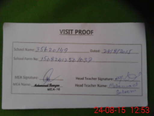 | Certified that this School was Inspected by the Undersigned MEA/DMO Today and the Information Stated Above is as Per Record. | |||||