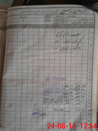 | CNIC | Full Name | Designation | R/C | Absence During Last Calender Month |