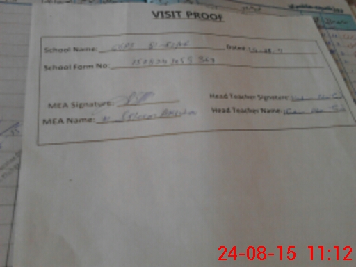 | Attendance Register | Head Teacher | MEA with School | Visit Proof |