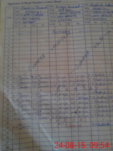 | Attendance Register | Head Teacher | MEA with School | Visit Proof |