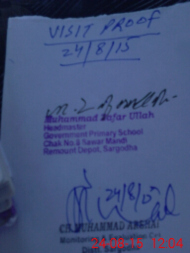 | District: SARGODHA | Tehsil: SARGODHA | Markaz: REMOUNT DEPOT - MALE | Level: Primary | |