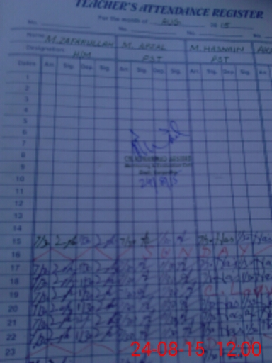 | Name: UM**** FA**** Designation: (School Headmaster's/Headmistress's) PST Phone/Cell Number: 03**** |