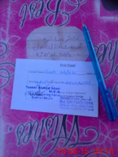 | School Visited by School Health & Nutrition Supervisor (No. of Visits) | 1 | Name1: | Patras Ghori | Name2: | |