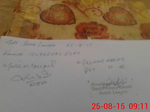 | Name: MA**** AB**** Designation: (School Headmaster's/Headmistress's) PST/PTC/JV Phone/Cell Number: 03**** |