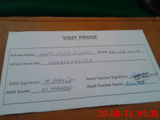 | Attendance Register | Head Teacher | MEA with School | Visit Proof |