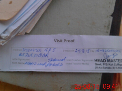 | Attendance Register | Head Teacher | MEA with School | Visit Proof |