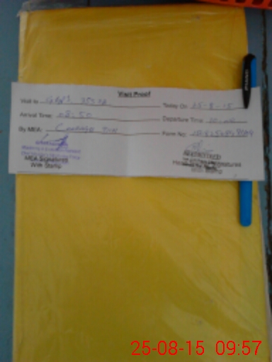 | Monitoring Date: 25-08-2015 | Start Time: 25-08-2015 08:49 AM | End Time: 25-08-2015 09:57 AM | Name of MEA: Ch**** Di**** | |